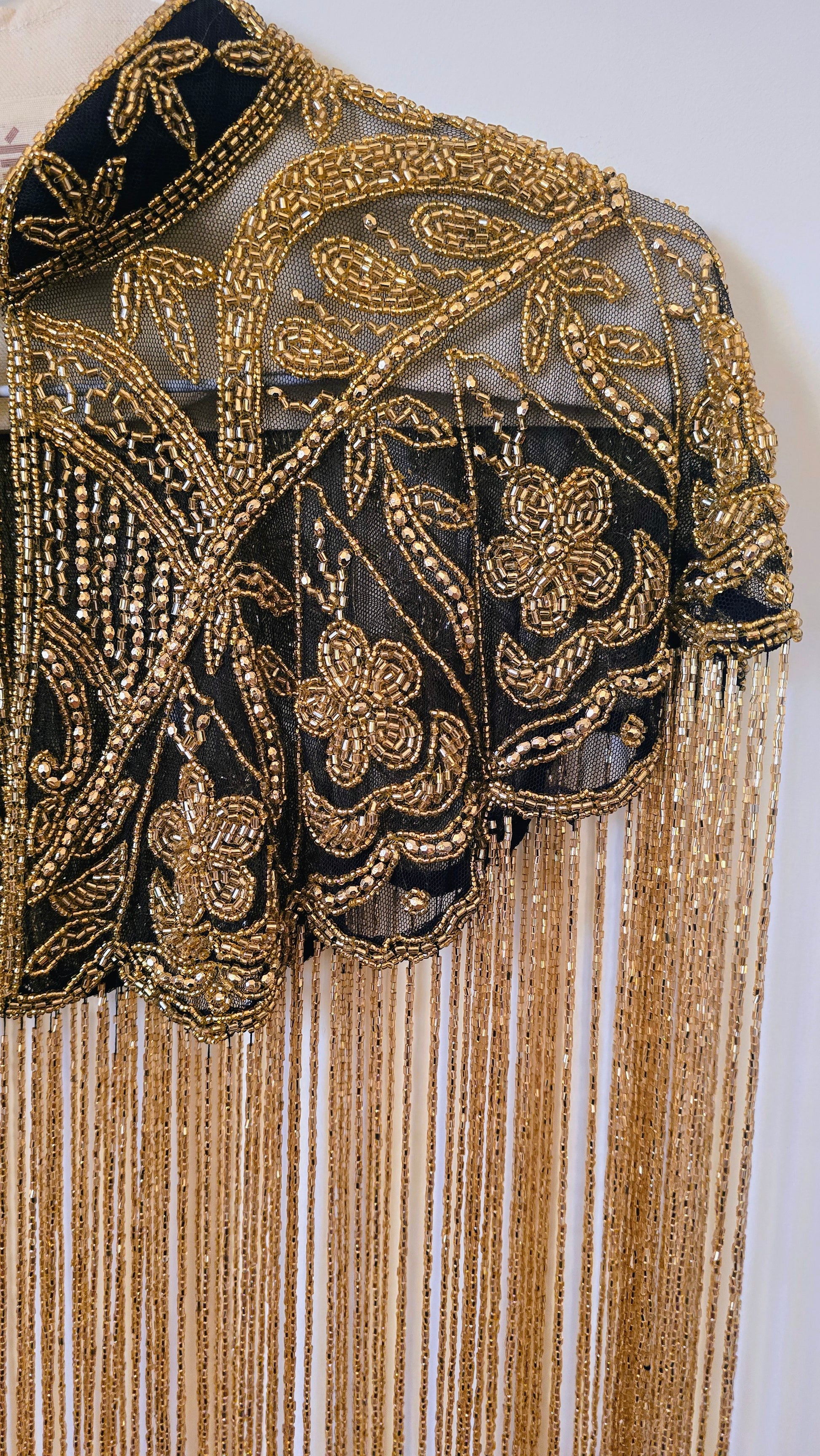 Migliaia di perline cucite una a una trasformano il tessuto in luce,