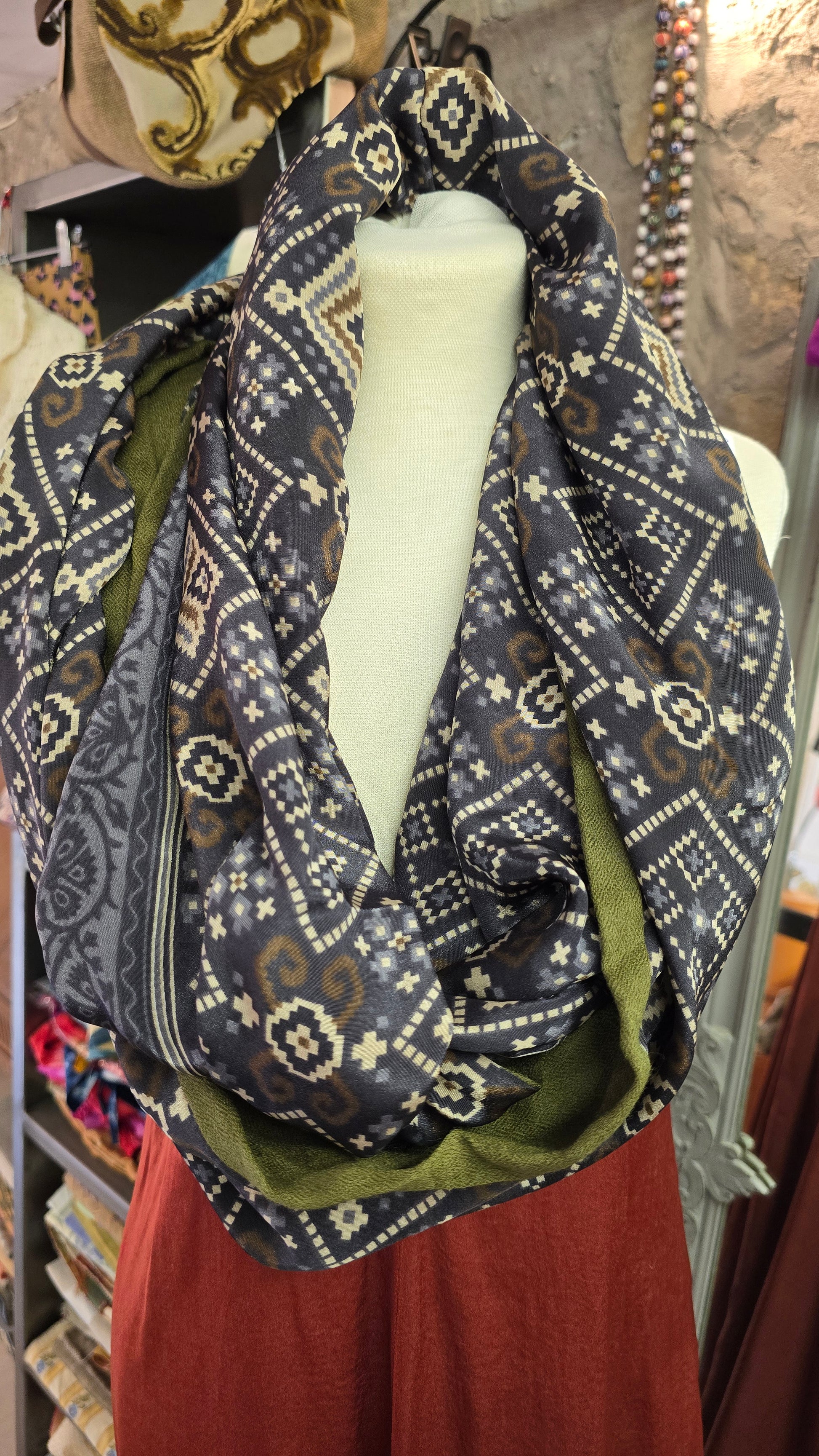 Grazie alla sua struttura ad anello, può essere indossata in modi diversi, offrendo comfort e stile per chi cerca eleganza e calore.