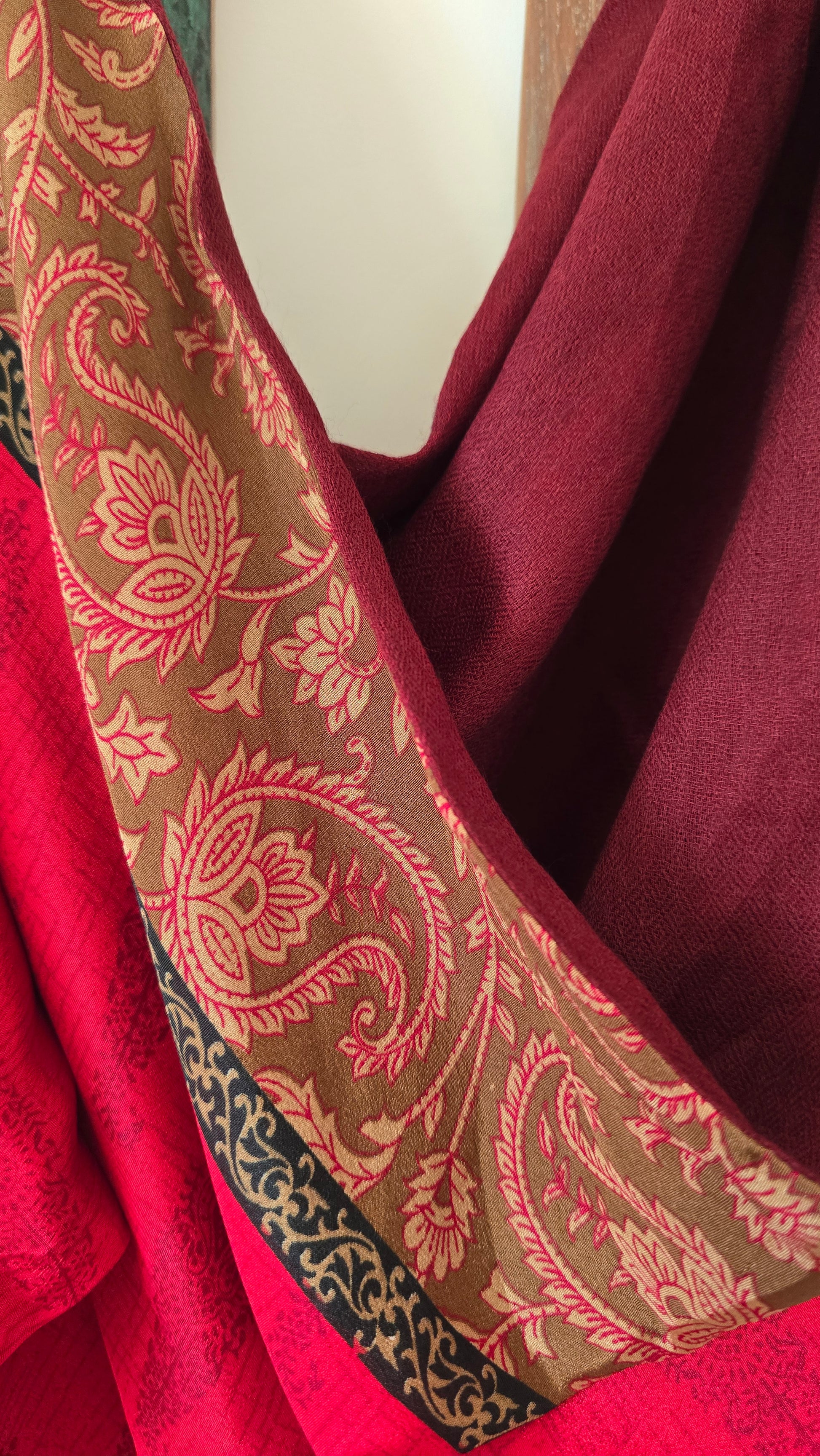 La sciarpa collo Eirén è un accessorio versatile e di lusso. È composta da due materiali di alta qualità: seta fantasia su un lato e una combinazione di lana e cashmir sull'altro.