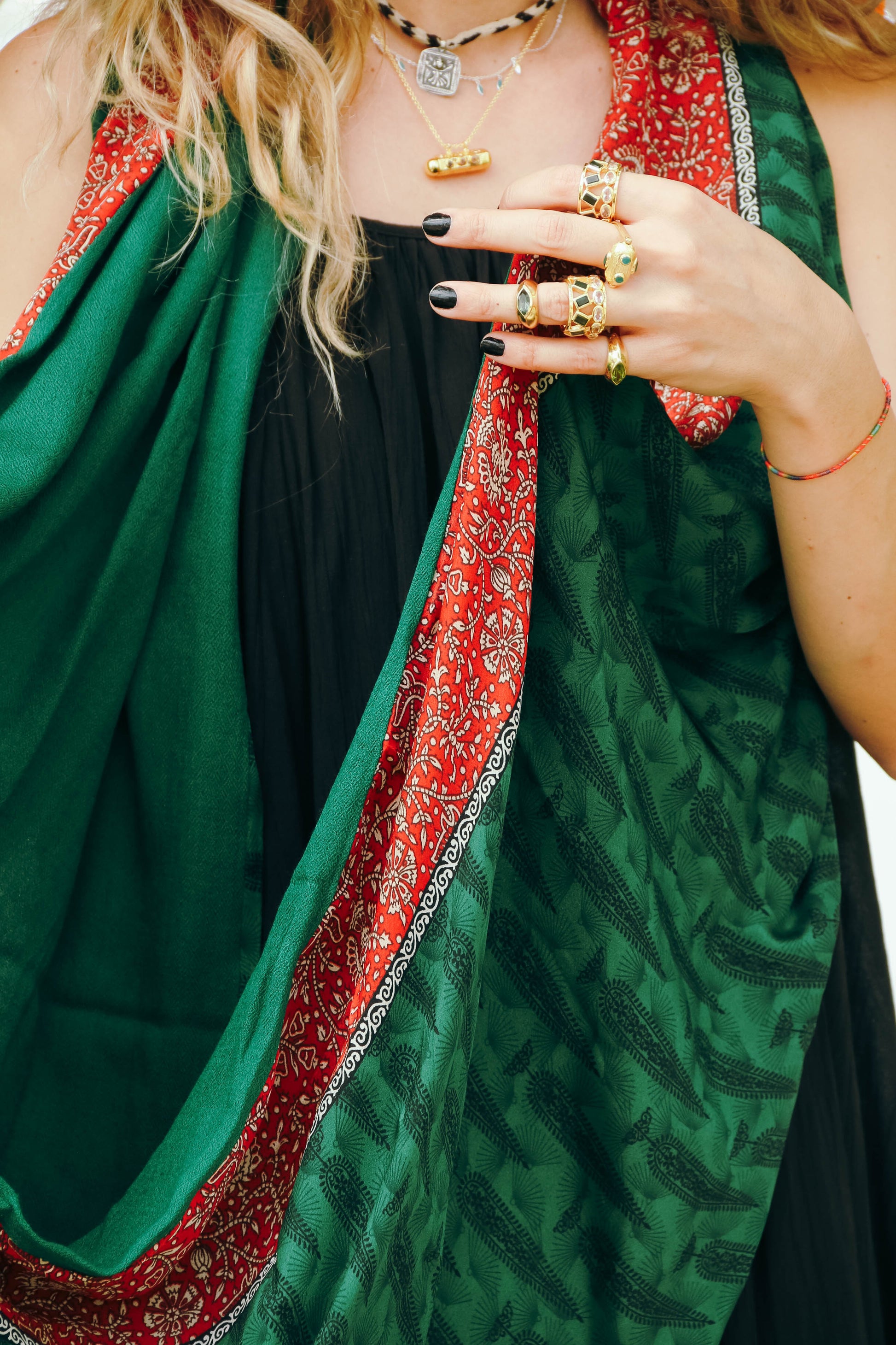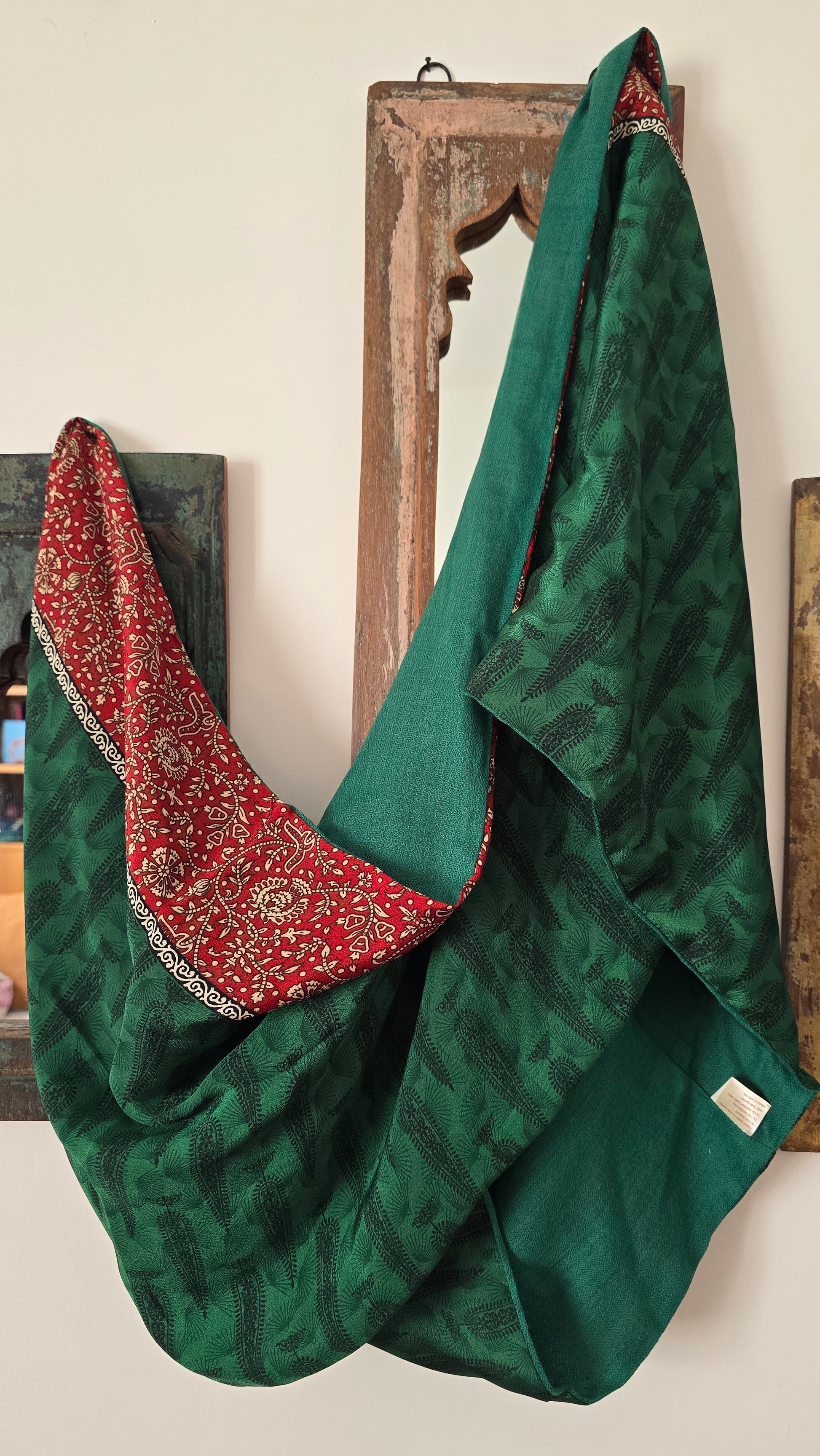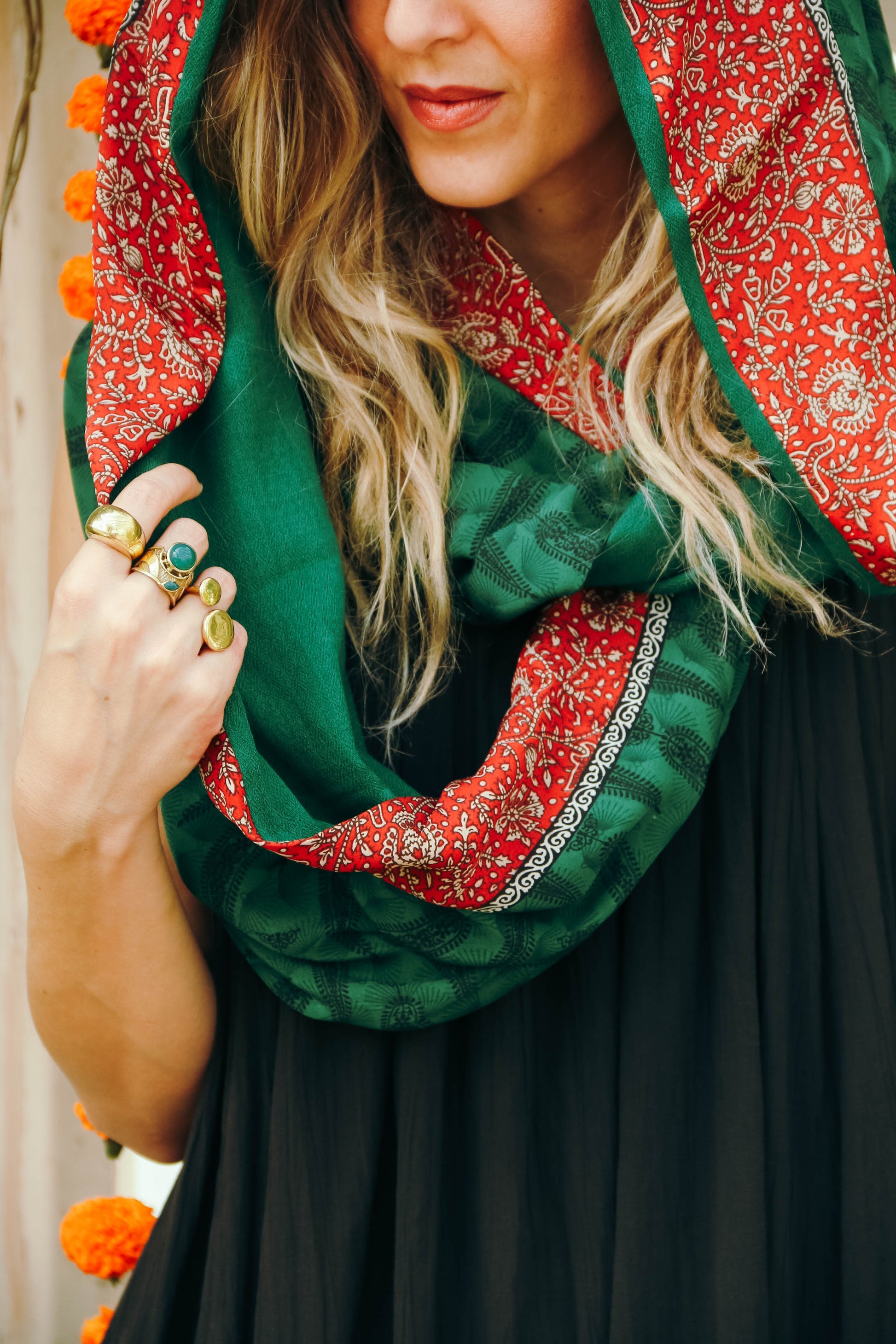 Grazie alla sua struttura ad anello, può essere indossata in modi diversi, offrendo comfort e stile per chi cerca eleganza e calore.
