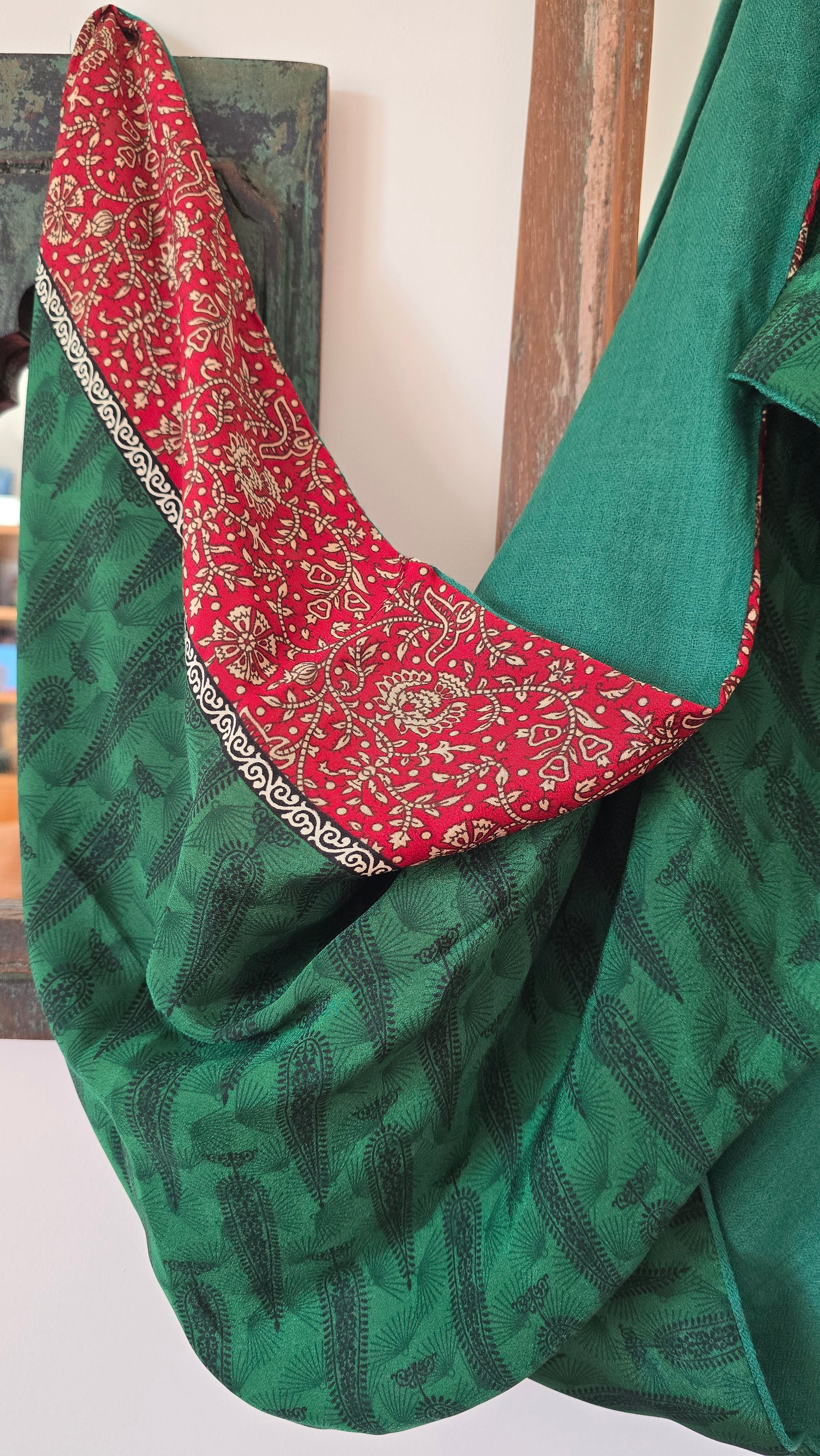 La sciarpa collo Eirén è un accessorio versatile e di lusso. È composta da due materiali di alta qualità: seta fantasia su un lato e una combinazione di lana e cashmir sull'altro.